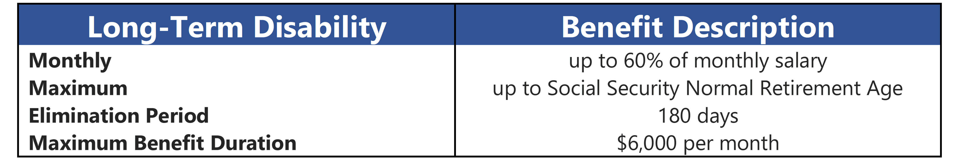 Long Term Disability (LTD) is designed to replace a portion of your monthly salary in the event of a covered, non-occupational disability. LTD is provided as a supplemental coverage through Mutual of Omaha.